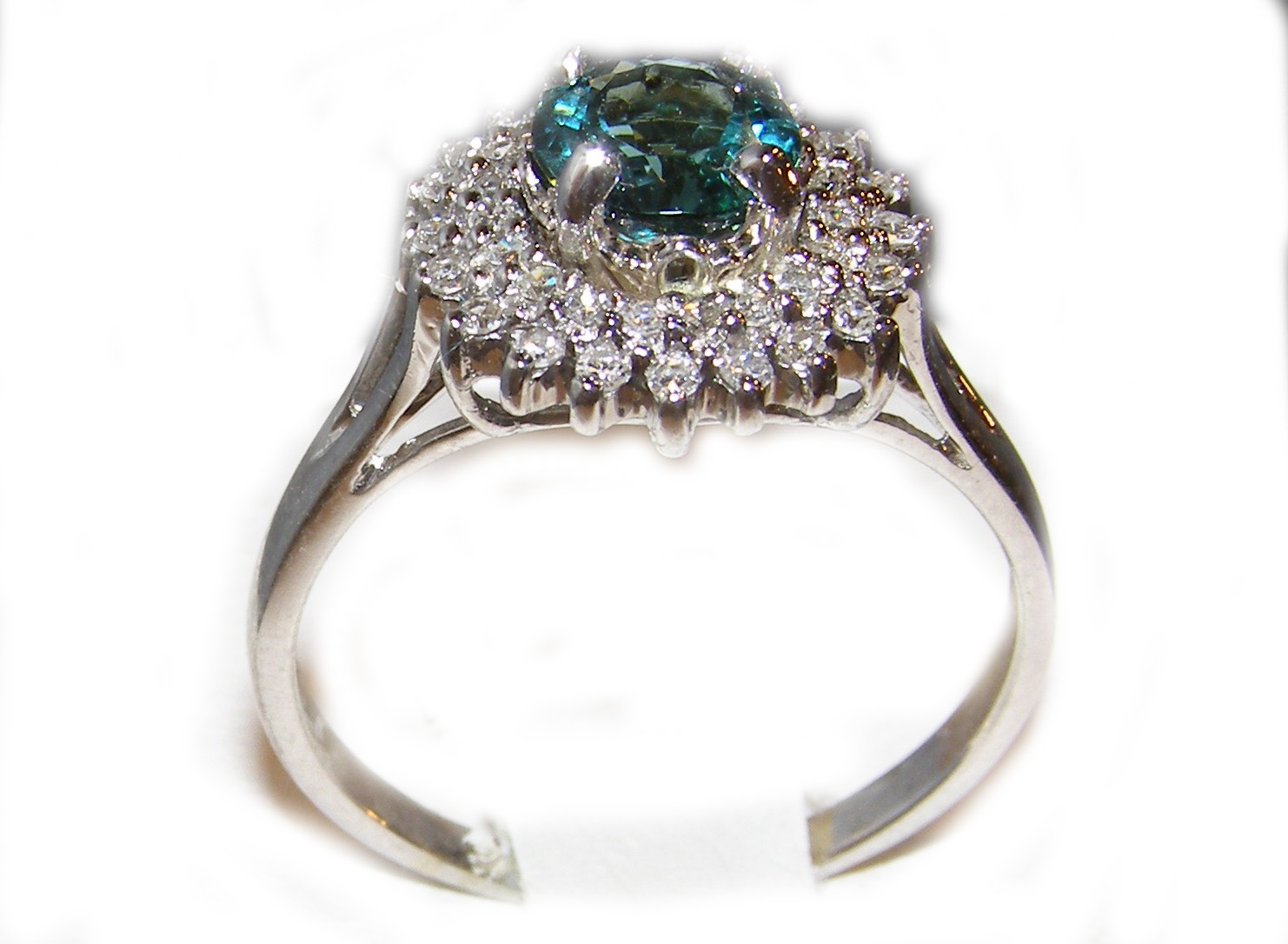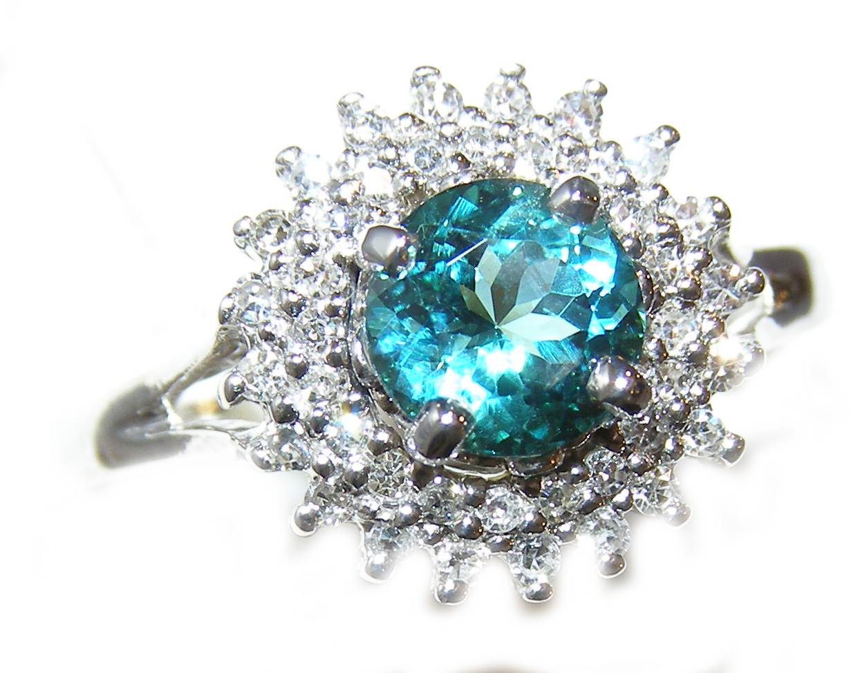 The color is exceptional and has a neon tone that is rarely seen with indicolite. The round brilliant tourmaline weighs 1.01 carats, measures 6.38 mm, is near loupe clean in clarity, has been expertly brilliant faceted and delivers blinding colorful brilliance.